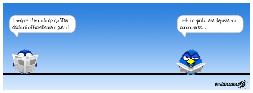 Case 1:Bird 1: Londres : Un malade du SIDA déclaré officiellement guéri ! | Case 2: | Case 3: Bird 1: Est-ce qu'il a été dépisté au coronavirus...