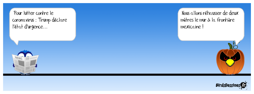 Case 1:Bird 1: Pour lutter contre le coronavirus : Trump déclare l'état d'urgence... | Case 2: | Case 3: Bird 1: Nous allons réhausser de deux mètres le mur à la frontière mexicaine !