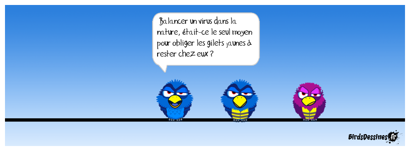 Case 1: | Case 2: Bird 1: Balancer un virus dans la nature, était-ce le seul moyen pour obliger les gilets jaunes à rester chez eux ? | Case 3: