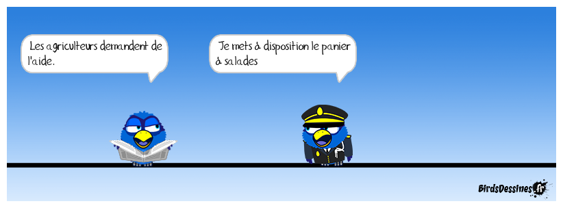 Case 1:Bird 1: Les agriculteurs demandent de l'aide. | Case 2: Bird 1: Je mets à disposition le panier à salades | Case 3: