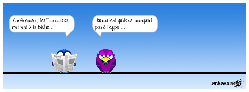 Case 1:Bird 1: Confinement, les Français se mettent à la bêche... | Case 2: Bird 1: Du moment qu'ils ne manquent pas à l'appel... | Case 3: