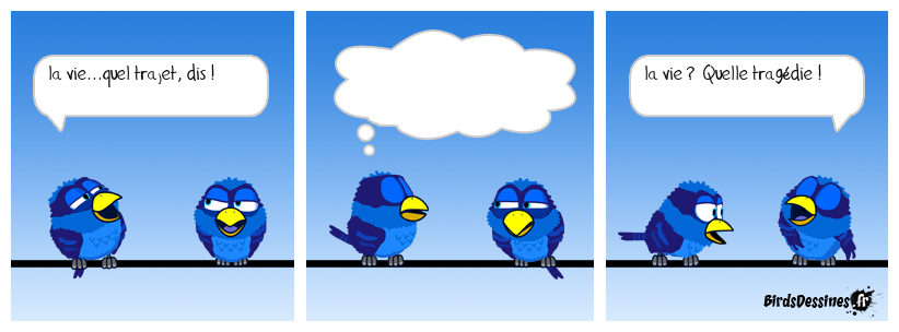 Case 1:Bird 1: la vie...quel trajet, dis ! | Case 2: | Case 3: Bird 1: la vie ? Quelle tragédie !