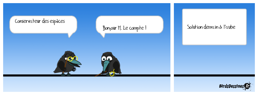 Case 1:Bird 1: Conservateur des espèces | Case 2: Bird 1: Bonjour M. Le compte ! | Case 3: Bird 1: Solution demain à l'aube