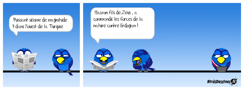 Case 1:Bird 1: Puissant séisme de magnitude 7 dans l'ouest de la Turquie | Case 2: Bird 1: Macron fils de Zeus , a commandé les forces de la nature contre Erdogan ! | Case 3: