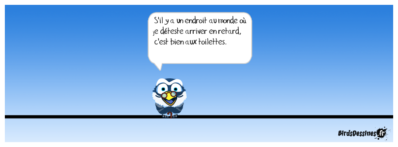 Case 1: | Case 2: Bird 1: S'il y a un endroit au monde où je déteste arriver en retard, c'est bien aux toilettes. | Case 3:
