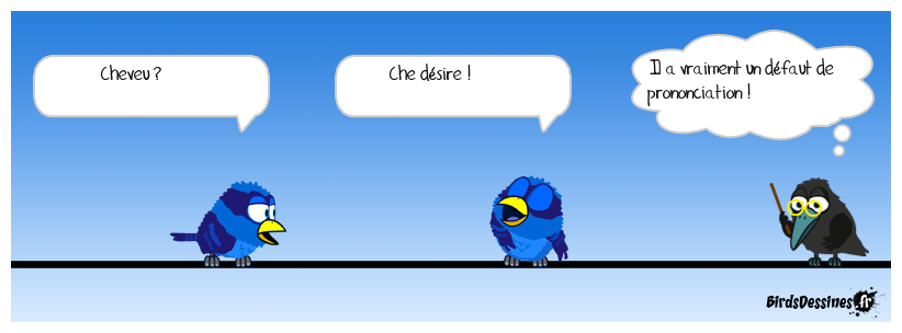 Case 1:Bird 1: Cheveu ? | Case 2: Bird 1: Che désire ! | Case 3: Bird 1: Il a vraiment un défaut de prononciation !