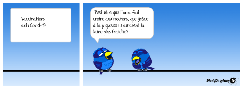 Case 1:Bird 1: Vaccinations anti Covid-19 | Case 2: Bird 1: Peut être que l’on a fait croire aux moutons, que grâce à la piquouse ils auraient la laine plus fraiche? | Case 3: