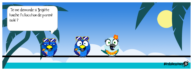 Case 1:Bird 1: Je me demande si Brigitte touche l'allocation de parent isolé ? | Case 2: | Case 3: