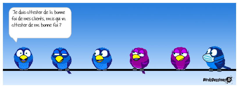 Case 1:Bird 1: Je dois attester de la bonne foi de mes clients, mais qui va attester de ma bonne foi ? | Case 2: | Case 3: