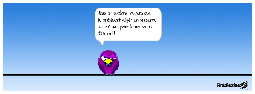 Case 1: | Case 2: Bird 1: Nous attendons toujours que le président algérien présente ses excuses pour le massacre d'Oran !! | Case 3: