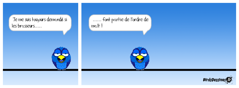 Case 1:Bird 1: Je me suis toujours demandé si les brasseurs..... | Case 2: Bird 1: ...... font partie de l'ordre de malt ! | Case 3: