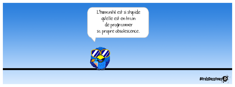 Case 1: | Case 2: Bird 1: L'humanité est si stupide qu'elle est en train de programmer sa propre obsolescence. | Case 3: