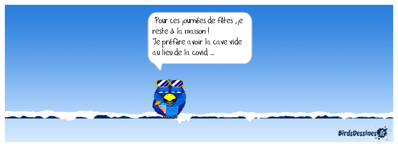 Case 1: | Case 2: Bird 1: Pour ces journées de fêtes ,je reste à la maison ! Je préfère avoir la cave vide au lieu de la covid … | Case 3:
