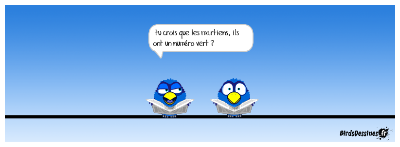Case 1: | Case 2: Bird 1: tu crois que les martiens, ils ont un numéro vert ? | Case 3: