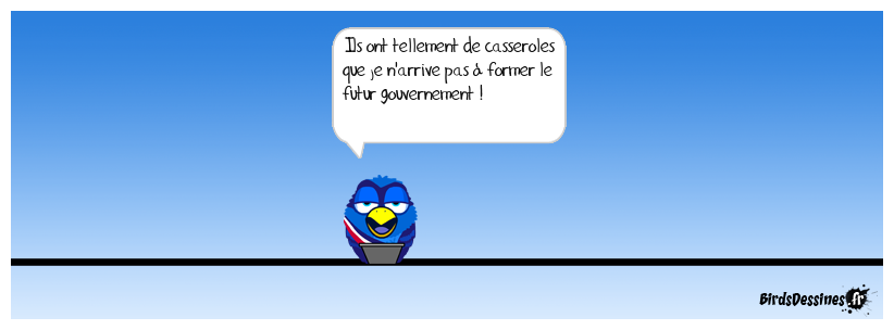 Case 1: | Case 2: Bird 1: Ils ont tellement de casseroles que je n'arrive pas à former le futur gouvernement ! | Case 3: