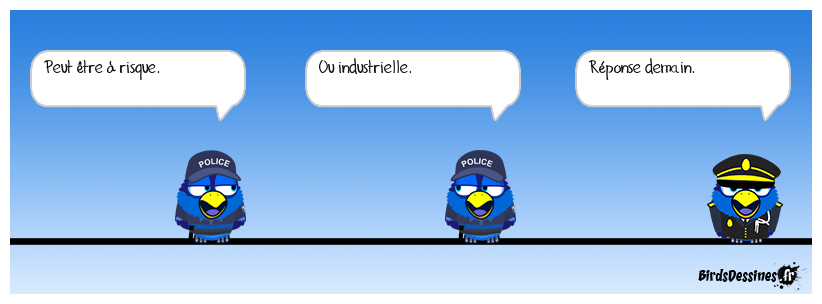Case 1:Bird 1: Peut être à risque. | Case 2: Bird 1: Ou industrielle. | Case 3: Bird 1: Réponse demain.