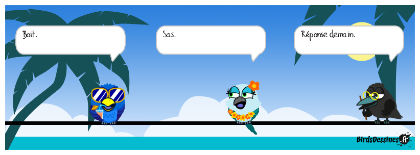 Case 1:Bird 1: Boit. | Case 2: Bird 1: Sas. | Case 3: Bird 1: Réponse demain.