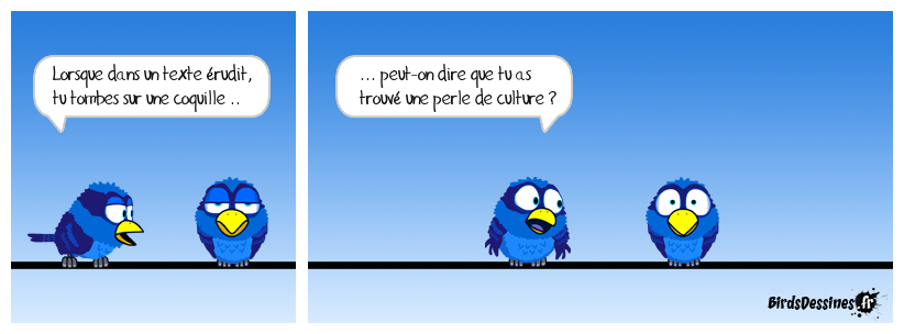 Case 1:Bird 1: Lorsque dans un texte érudit, tu tombes sur une coquille .. | Case 2: Bird 1: ... peut-on dire que tu as trouvé une perle de culture ? | Case 3: