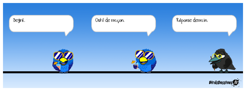 Case 1:Bird 1: Degré. | Case 2: Bird 1: Outil de maçon. | Case 3: Bird 1: Réponse demain.