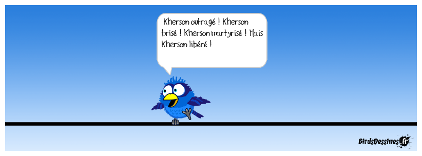 Case 1: | Case 2: Bird 1: Kherson outragé ! Kherson brisé ! Kherson martyrisé ! Mais Kherson libéré ! | Case 3: