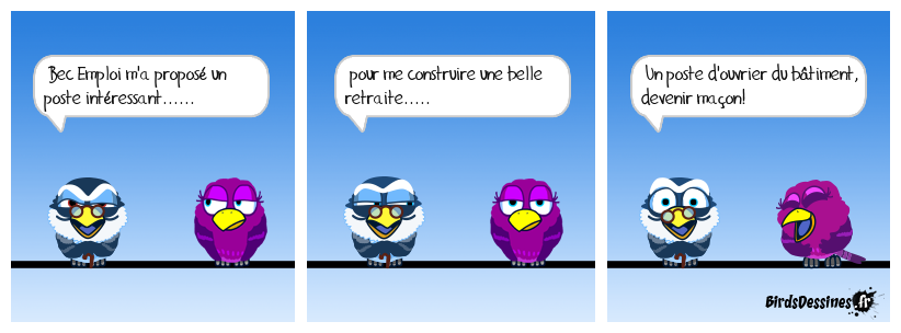Case 1:Bird 1: Bec Emploi m'a proposé un poste intéressant...... | Case 2: Bird 1: pour me construire une belle retraite..... | Case 3: Bird 1: Un poste d'ouvrier du bâtiment, devenir maçon!
