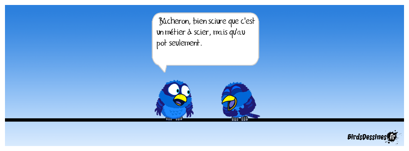 Case 1: | Case 2: Bird 1: Bûcheron, bien sciure que c'est un métier à scier, mais qu'au pot seulement. | Case 3: