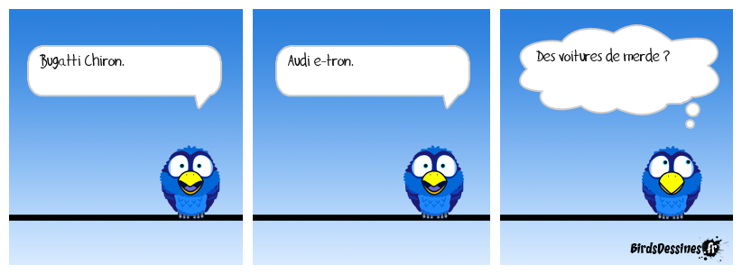 Case 1:Bird 1: Bugatti Chiron. | Case 2: Bird 1: Audi e-tron. | Case 3: Bird 1: Des voitures de merde ?