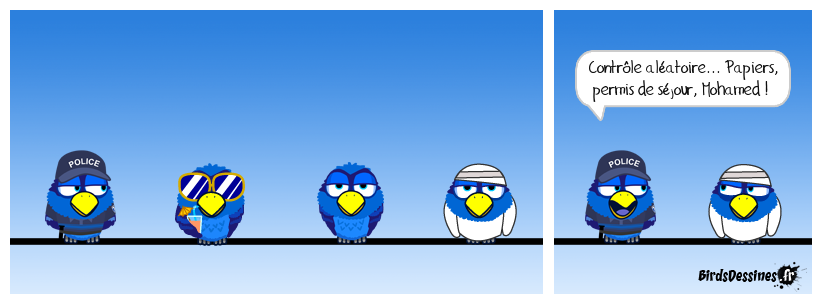 Case 1: | Case 2: | Case 3: Bird 1: Contrôle aléatoire... Papiers, permis de séjour, Mohamed !