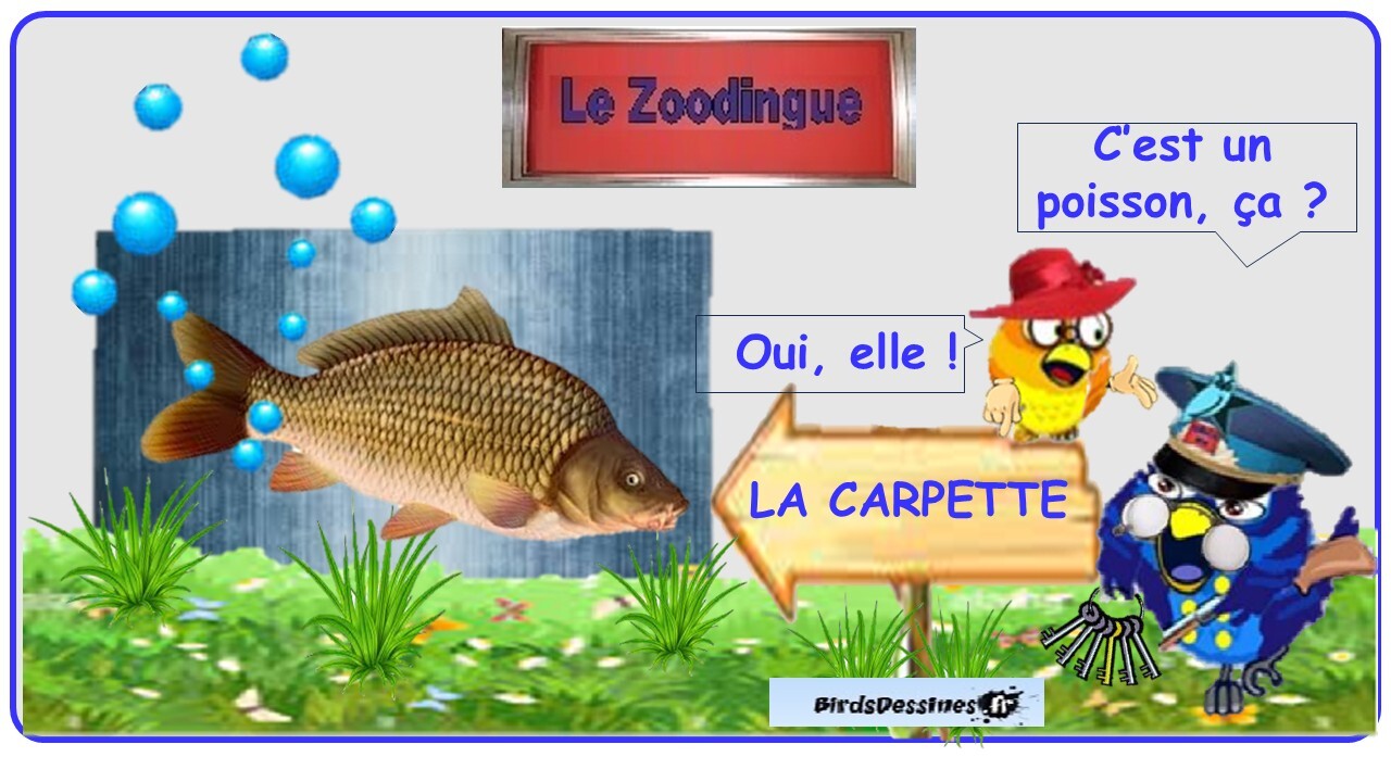 Accueil › Forums › Cervelles d'oiseaux › Le Zoodingue des Birds Ce sujet contient 1,727 réponses, 19 participants et a été mis à jour pour la dernière fois par Jojo88, le il y a 3 jours et 8 heures. 15 sujets de 1,561 à 1,575 (sur un total de 1,728) ← 1 2 3 … 104 105 106 … 114 115 116 → Auteur Messages 21 septembre 2025 à 16 h 22 min #451978 AlavacomgetepusParticipant @NL : effectivement, le restaurant à Bordeaux dont je parlais était un petit établissement maintenant fermé, mais il subsiste une belle sculpture du coq sur la façade. 😉 21 septembre 2025 à 18 h 42 min #451996 ennelleParticipant Et ça rime avec Arthur ! (dommage, je n’ai pas pu mettre son nom à l’endroit) 21 septembre 2025 à 19 h 33 min #452000 AlavacomgetepusParticipant Poisson spécialiste du coup d’épée dans l’eau. 😆 22 septembre 2025 à 1 h 01 min #452010 Jojo88Participant ❤ Ça me rappelle : https://www.birdsdessines.fr/2025/09/14/sans-effets/ 😉 23 septembre 2025 à 18 h 20 min #452212 ennelleParticipant J’ai vu et entendu celle-ci dans un reportage animalier… 24 septembre 2025 à 0 h 11 min #452230 Jojo88Participant ❤ Une vraie mégère ! 😉 😀 24 septembre 2025 à 14 h 28 min #452304 ennelleParticipant Oui, on prononce bien PAN ! 24 septembre 2025 à 14 h 53 min #452306 ennelleParticipant Celui-là, il ne trump’ pas ! 24 septembre 2025 à 17 h 52 min #452336 AlavacomgetepusParticipant Pour Trump, je verrais bien un dingo. 😆 25 septembre 2025 à 0 h 10 min #452396 Jojo88Participant Ah ah ah, bien vu Alava. 😀 ❤ Un paon saoul, c’est un paon de mûr … 😉 25 septembre 2025 à 13 h 38 min #452467 ennelleParticipant Papillon en voie de disparition pour manque de nourriture, pimprenelle ou sanguisorbe… Dommage ! 25 septembre 2025 à 23 h 11 min #452544 Jojo88Participant ❤ Et Nicolas … 😉 Faites de beaux rêves. 😀 26 septembre 2025 à 15 h 24 min #452637 ennelleParticipant Salut Jojo ! Nicolas il cogite au(x) fond(s) des bulles ! 4 octobre 2025 à 13 h 34 min #453574 ennelleParticipant Deux d’un coup, pendant que j’y suis ! Puisqu’elle est muette, elle parle par derrière ! 4 octobre 2025 à 14 h 24 min #453576 AlavacomgetepusParticipant La carpe pète. 😆 Auteur Messages 15 sujets de 1,561 à 1,575 (sur un total de 1,728) ← 1 2 3 … 104 105 106 … 114 115 116 → Vous devez être connecté pour répondre à ce sujet. Connexion Identifiant: Mot de passe: Rester connecté Connexion